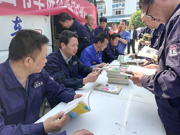 2018年4月28日上午,在“五一”勞動(dòng)節(jié)來臨之際,為滿足企業(yè)員工朋友的閱讀需求,積極引導(dǎo)員工多讀書、讀好書,用****的書刊激勵(lì)員工自立、自強(qiáng),營造良好的讀書氛圍,縣圖書館到我公司開展流動(dòng)圖書車進(jìn)企業(yè)活動(dòng),本次活動(dòng)的主題是“書箱送春風(fēng),溫情送員工”,圖書館準(zhǔn)備了大量的技術(shù)業(yè)務(wù)書籍,公司一線員工來到流動(dòng)圖書車旁,爭(zhēng)相查閱技術(shù)資料,閱讀相關(guān)書籍,豐富了員工的精神生活。